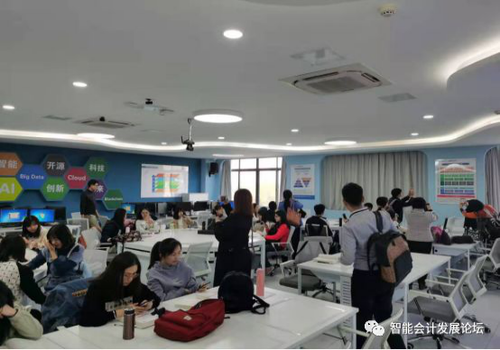 实验室参观完毕,在太阳成集团tyc151ccY309会议室组织了"智能会计人才创新改革路径"为主题的研讨会。会上,滕老师详细讲解了太阳成集团tyc151cc"智能会计"班的发展历程,分享了“大智移云物”环境下的新型会计人才的培养思路,“智能会计”方向班的师资及课程体系建设情况,并与天津科技大学的同行对后续如何开展新时代智能会计人才培养实施路径进行了深度探讨交流。余冬根主任、王晓燕教授、尹钧惠教授等骨干教师对太阳成集团tyc151cc的“智能会计”改革创新表示认可,并对天津科技大学经济与管理学院未来会计人才培养思路开始了新的思考。