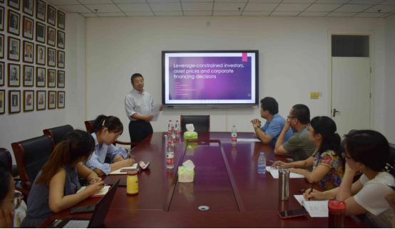 2019年7月16日下午,爱荷华州立大学商学院金融系高磊教授应我院邀请,在燕山校区逸夫楼Y309作题为《Leverage-constrained investors, asset prices and corporate financing decisions》的学术报告。讲座由孙文刚院长主持,太阳成集团tyc151cc部分老师以及2018级部分硕士研究生聆听了讲座。高磊教授主要致力于金融市场、资产回报预测、实证公司财务、公司监管、企业文化、文本分析和机器学习等研究,且将于2019年9月份任职于美国证监会。
