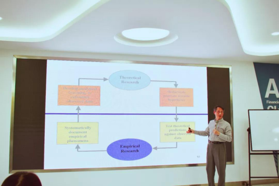 张教授首先介绍了助理教授和副教授在做研究目的、研究主题类型、发表的期刊种类和精力分配等方面的不同。接着张教授以管理会计为例,向我们说明了会计主流研究和现实实践之间存在着出入。在学术研究方法上,张教授展示了四种研究方法,并指出实证研究在学术领域和实践中均占据主流地位;在有价值的研究方面,张教授指出,当认知和实务不一样时,学术研究才有价值。