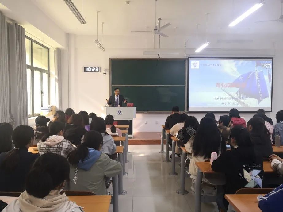 郝先经从“专业之源”、“行业之道”、“信念之翼”和“未来之路”四个方面展开讲座。首先介绍了学院与信永中和的校企合作,其次,介绍了注册会计师行业的起源、发展以及未来展望,然后,介绍了信永中和集团辉煌的历史和光明的发展前程,最后,作为学长希望同学们以梦为马,不负韶华,踏实做人,认真做事,期待同学们未来在注册会计师行业发光发热!