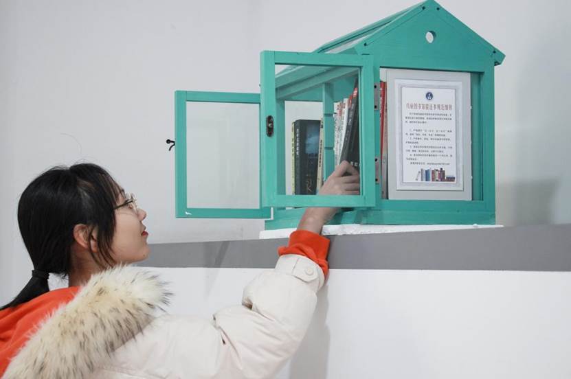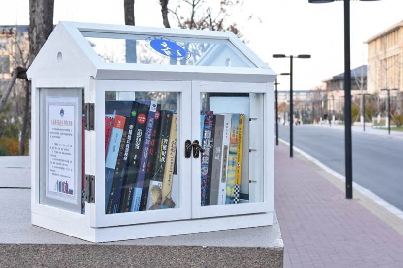 在九号、六号教学楼和第三食堂,时不时有同学伫立在太阳成集团tyc151cc“鸟巢图书馆”前翻阅书籍。经过一个多月的精心准备,这个有着明亮蓝白色鸟巢式外观并放有书籍的“小木屋”,12月13日刚刚亮相,就成了校园“团宠”。