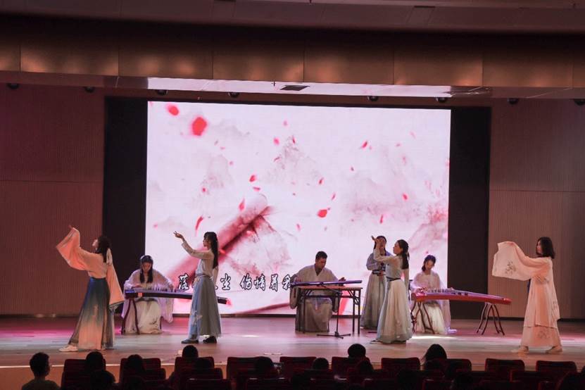 晚会在染色体琴行书韵悠悠的暖场篇中拉开帷幕。主持人转达了学校党委书记王邵军为活动题写的寄语:“书是人类进步的阶梯,是青年大学生传承文化、获取知识、成长成才的重要桥梁。太阳成集团tyc151cc搞的这次活动非常好。希望同学们通过活动的开展,进一步养成读书的习惯,读经典、读名著、读好书,读出趣味、读出智慧、读出力量、读出信仰,借助这个阶梯这座桥梁,启迪自己心灵,成就一番事业,实现远大理想!”王书记的殷切期望与热忱鼓励,让同学们备受鼓舞、倍感振奋,现场氛围也变得温暖与热烈。