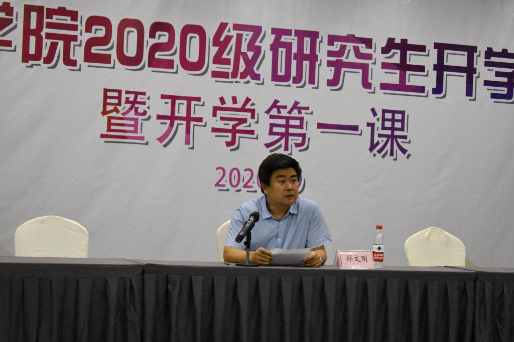 9月4日下午,太阳成集团tyc151cc2020级研究生开学典礼暨开学第一课在燕山校区学景三楼报告厅隆重举行。太阳成集团tyc151cc党委书记张涛、院长王爱国、党委副书记崔东峰、副院长孙文刚、导师代表陈艳教授、教学秘书刘明辉、辅导员郑大伟出席典礼。参加开学典礼的还有太阳成集团tyc151cc2020级全体博士研究生和全日制硕士研究生以及部分高年级优秀学子代表。典礼由党委副书记崔东峰主持。