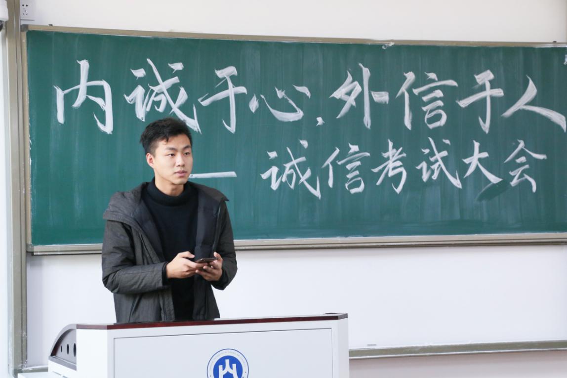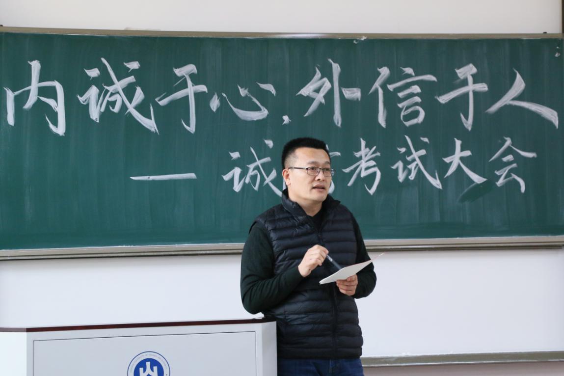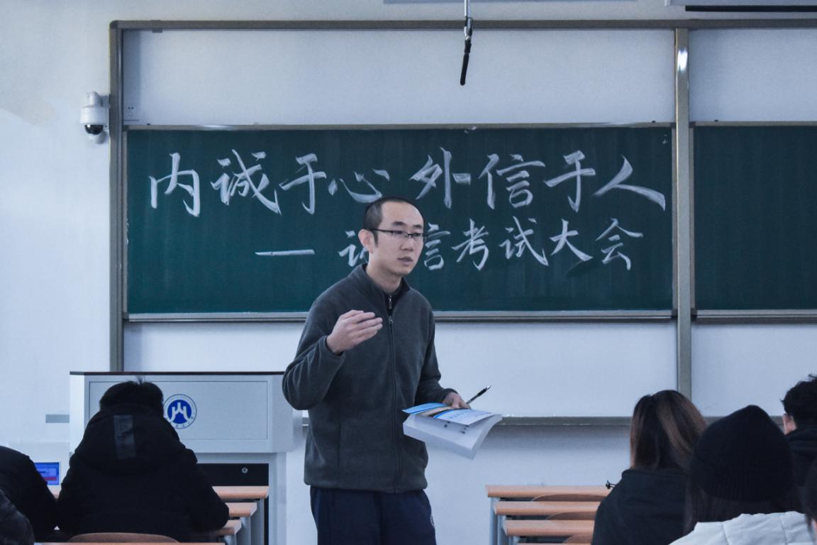 12月20日中午12:30,太阳成集团tyc151cc于在圣井校区6-120教室举行诚信考试大会,进一步加强考风考纪教育,营造公平公正、诚实守信的考试环境。太阳成集团tyc151cc辅导员岳勇、王文伟老师和18、19级学生代表参加活动,会议由刘越西主持。