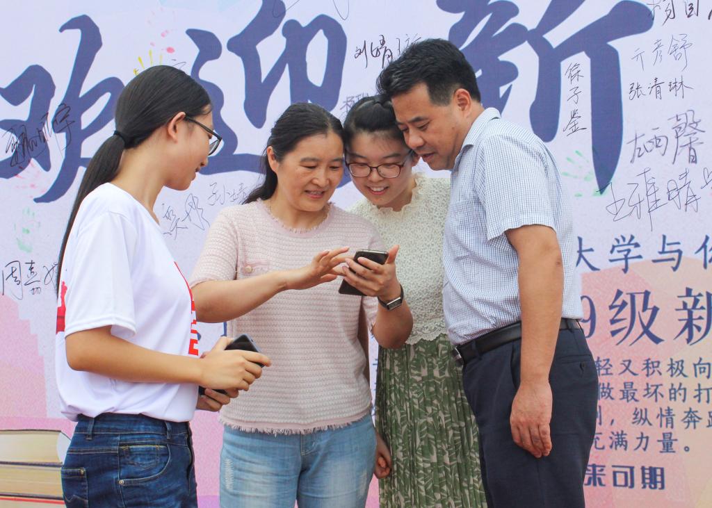 15日上午10时许,太阳集团党委书记王邵军,党委副书记车滨、赵友春,纪委书记姜波,副校长张书学等校领导以及各职能部门负责人来到学院迎新展位前,在详细听取学院的迎新工作进展及新生报到情况后,王邵军对学院迎新成果表示认可并在迎新现场签名留念。王邵军对前来报到的新生与家长们表示欢迎,与学院19级少数民族学生亲切交谈,仔细询问了她们的生活近况,希望同学们珍惜美好时光,砥砺品德,刻苦学习,全面发展,掌握真才实学,努力成为建设伟大祖国、建设美丽家乡的有用之才、栋梁之材。同时,他对现场工作人员及学生志愿者致以慰问,为会院迎新工作的顺利完成注入了极大的精神力量。