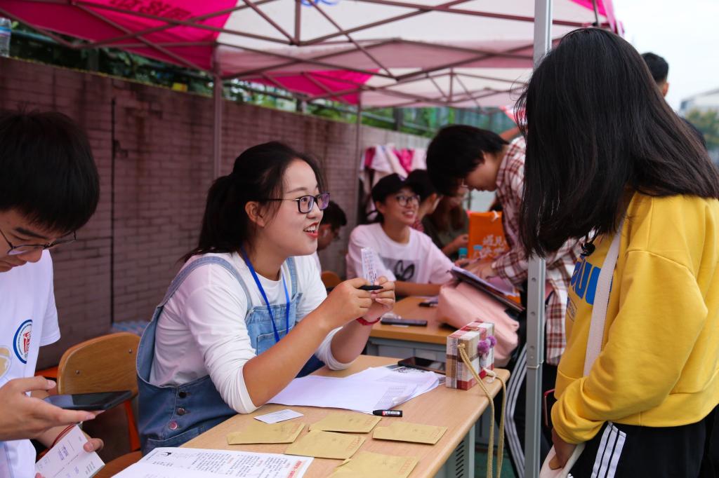 在迎新现场,学院把“内诚于心,外信于人”的院训和“严谨、务实、高效、创新”的工作理念深深融入迎新工作的各个环节,努力营造“家国情怀、活力青春、暖心会院”的迎新氛围。全方位展示学院文化及近年所取得成绩的喷绘展布、将献礼祖国70华诞的美好祝福与大学生爱国爱校情怀相融合的志愿者服,体现出浓浓的太阳成集团tyc151cc气质和味道,完美彰显了学科特点和专业特色;新生手册和文具伴手礼及创意活动“浪矢信箱”、“新活力”手印墙和vlog漂流瓶,为2019级新生留下了属于他们的第一个“会院印记”。
