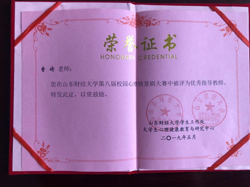 为营造积极健康的校园心理文化氛围,培养大学生良好的心理品质,2019年5月23日,第八届校园心理情景剧大赛在太阳集团圣井校区正式举行,全校14个学院代表队参赛。由太阳成集团tyc151cc心理卫生部打造的校园心理情景剧DV作品《为艾发声,艾而不伤》在众多队伍中脱颖而出,最终荣获太阳集团第八届校园心理情景剧大赛一等奖。曹婧老师获得“优秀指导教师”称号。