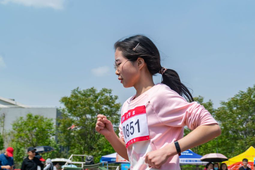 “选择3000米,是因为我从小就练长跑,耐力较好,而且这是一个具有挑战性的项目,我想有所突破。”20级会计实验班杜剑萧同学向我们解释为何选择三千米的项目。