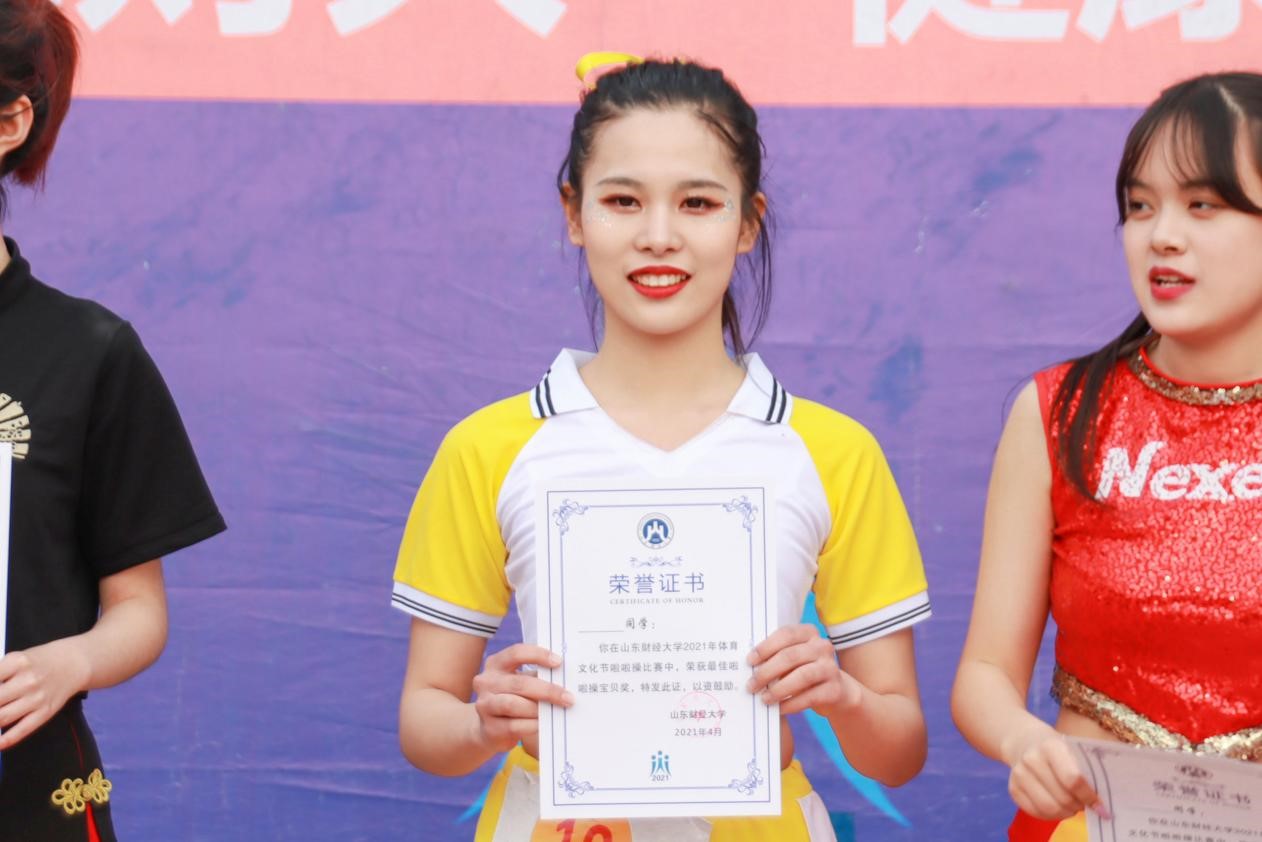 经过激烈的角逐,太阳成集团tyc151cc代表队在此次大赛中以9.66分斩获亚军。其中,在十六进六的“啦啦操宝贝”评选中,我院会计学1904班的韩凯宁荣获“啦啦操宝贝“的称号。