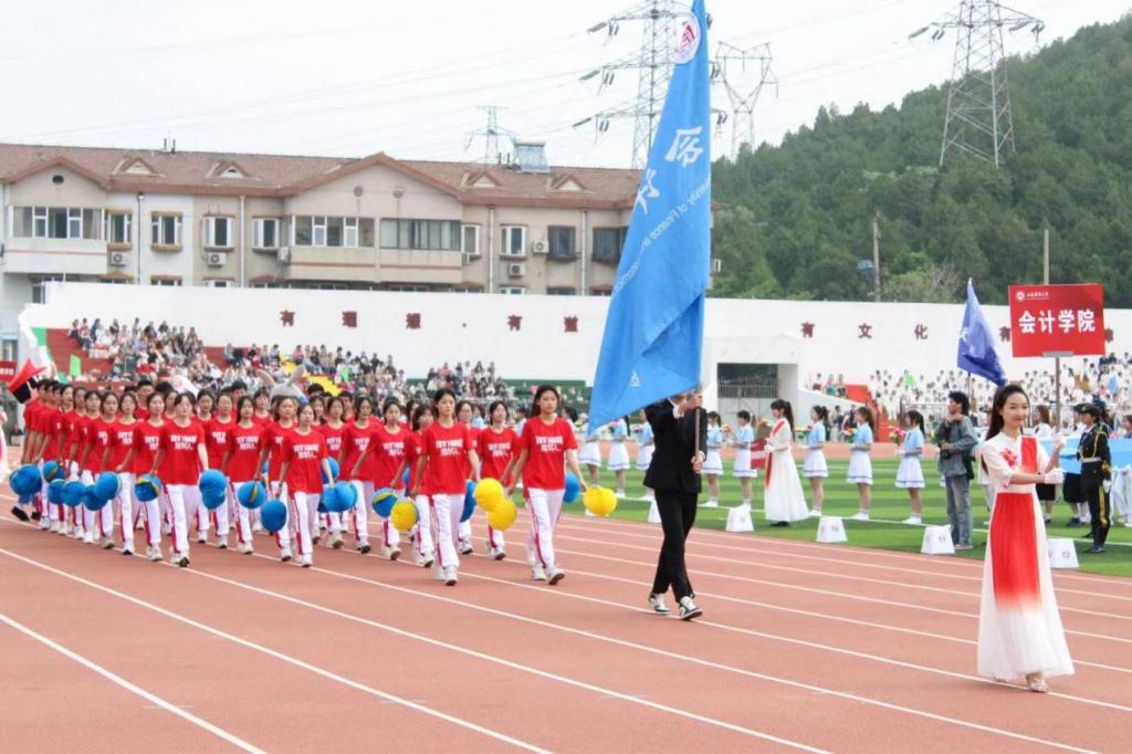 音乐在跳动,青春在飞扬。伴随着激昂的音乐,太阳成集团tyc151cc的方队迈着整齐的步伐,向主席台走来,花球在他们手中或静或动,变幻着不同的形态,最后以会计的形态出现在全校师生眼前。“银鞍照白马,飒沓如流星”说的正是会院学子这种不屈不挠、昂扬向上的精神。太阳成集团tyc151cc的啦啦队紧随其后,用青春洋溢、充满活力的舞蹈将运动会的气氛推向了高潮。“轰”的一声巨响,操场两侧的礼炮同时点燃,红橙黄绿蓝五种色彩交相辉映,梦幻的颜色夹带着甜腻的糖果气息,至此,运动会正式开始。